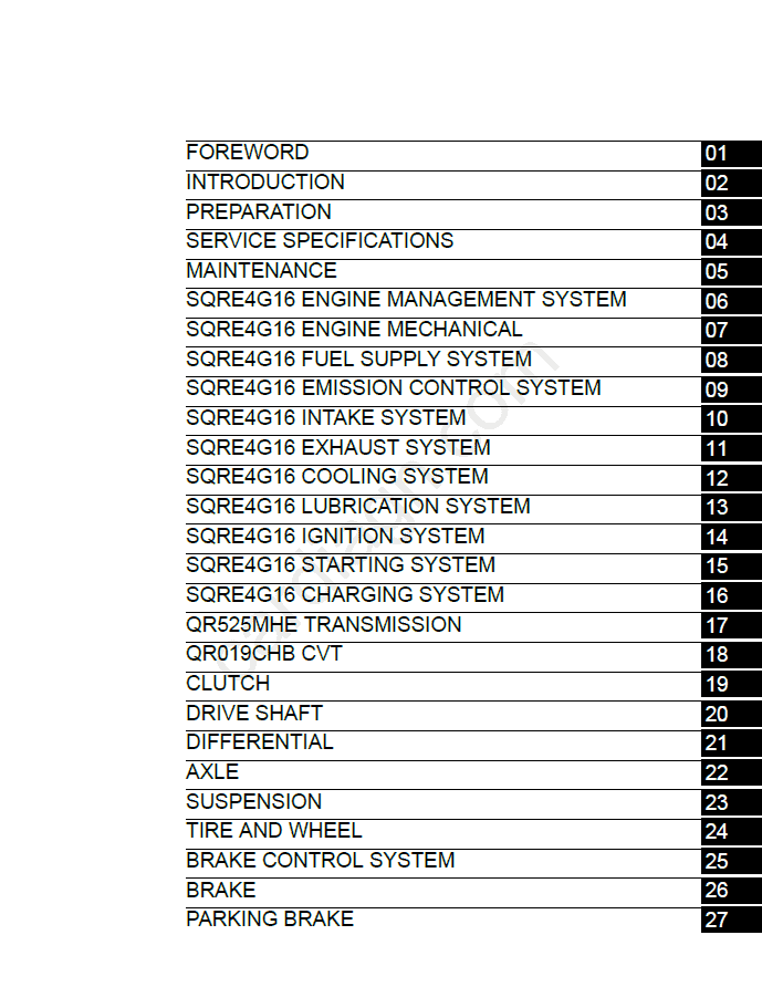 This manual provides information on diagnosis, service procedures, adjustments and specifications for the Chery M16 / Arrizo 7, with 1.6L SQRE4G16 I4 (petrol) Engine.