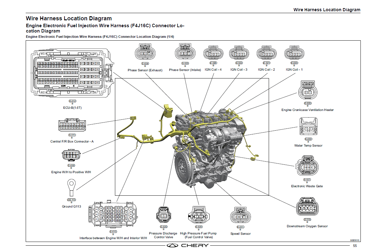 – Engine Electronic Fuel Injection Wire Harness (F4J16C) Connector Location Diagram