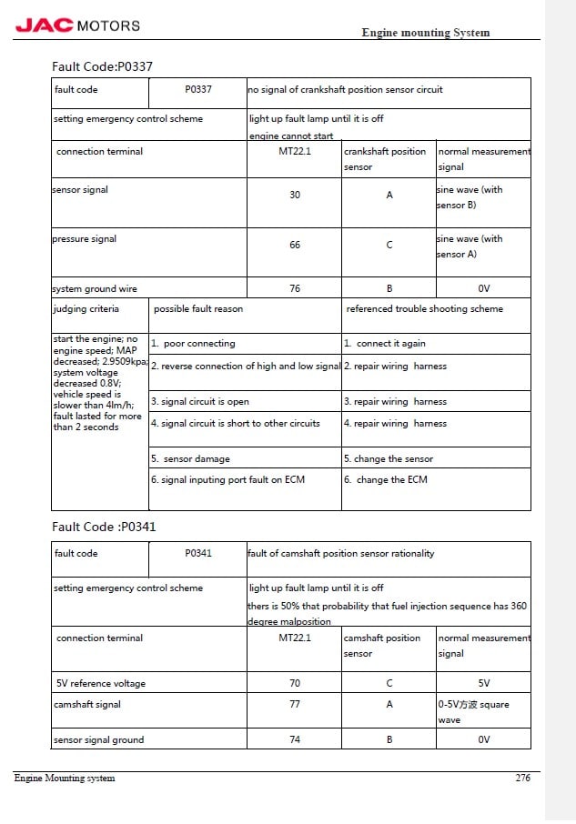 – Fault Code Table