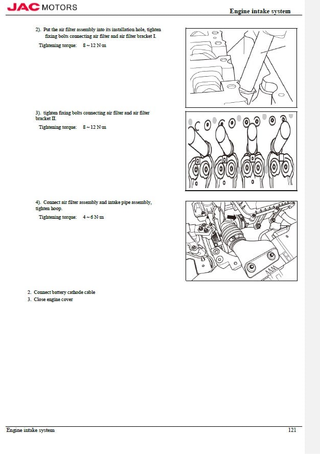 – Engine oil drainage and filling