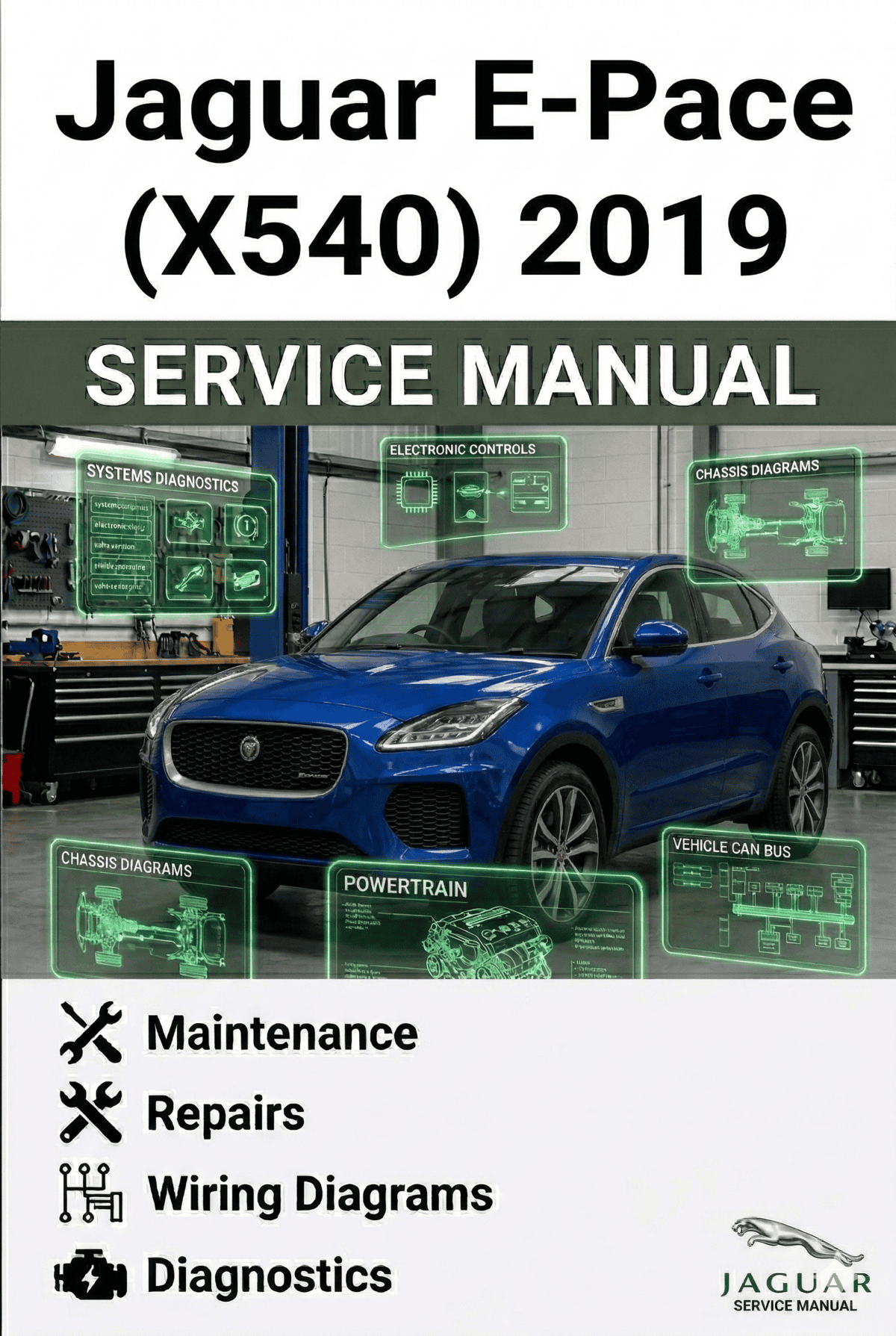This manual provides information on diagnosis, service procedures, adjustments and specifications for the 2019 Jaguar E-Pace (X540), with INGENIUM I4 2.0L Diesel and INGENIUM I4 2.0L Gasoline Engines.
