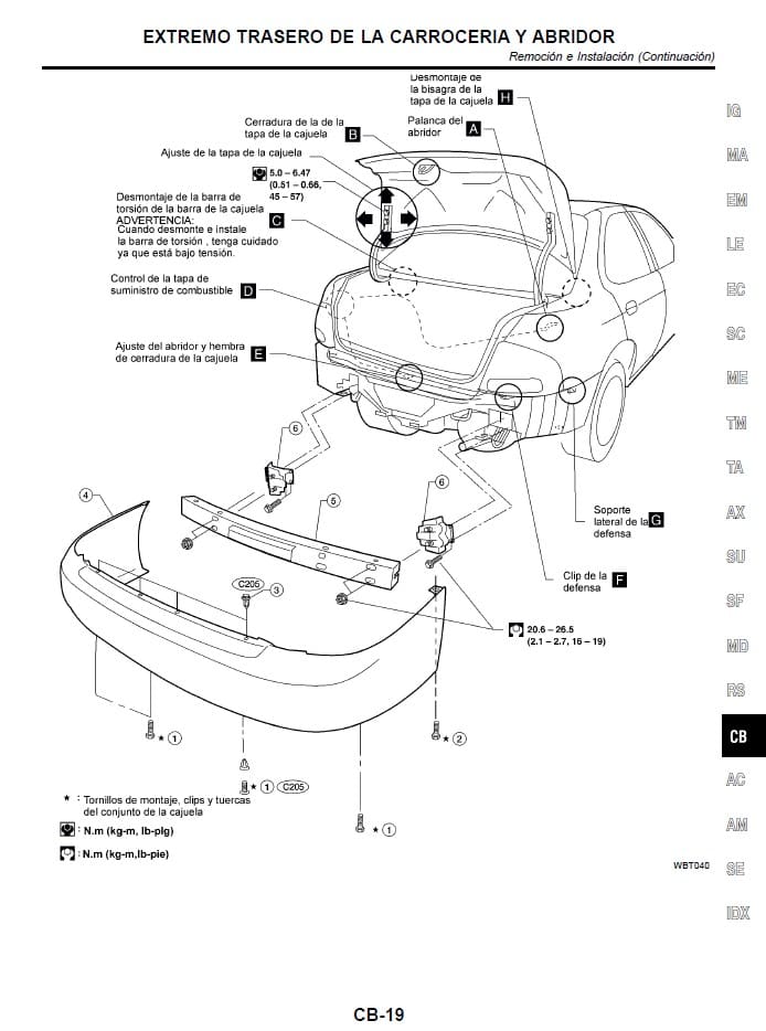 – EXTREMO TRASERO DE LA CARROCERÍA Y ABRIDOR
